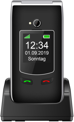 Die auf der Geräterückseite dezent integrierte SOS Notruftaste ermöglicht Ihnen bei Gefahrensituationen eine sofortige Hilfe. Durch Ihre persönliche Eingaben von bis zu 5 Nummern/Personen entscheiden Sie selber wohin Ihr Hilferuf gehen soll. Selbst das Laden wird Ihnen durch eine im Lieferumfang integrierte Tischladeschale vereinfacht.