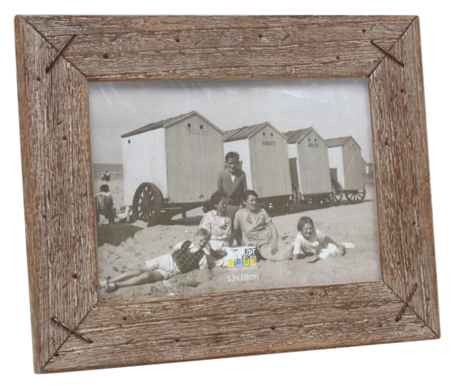 Bilderrahmen aus Treibholz in grauer Ausführung mit feinem Akzent an den Ecken. Der Rahmen ist mit klarem Qualitätsglas ausgestattet. Für ein gemütliches und warmes Wohnambiente.