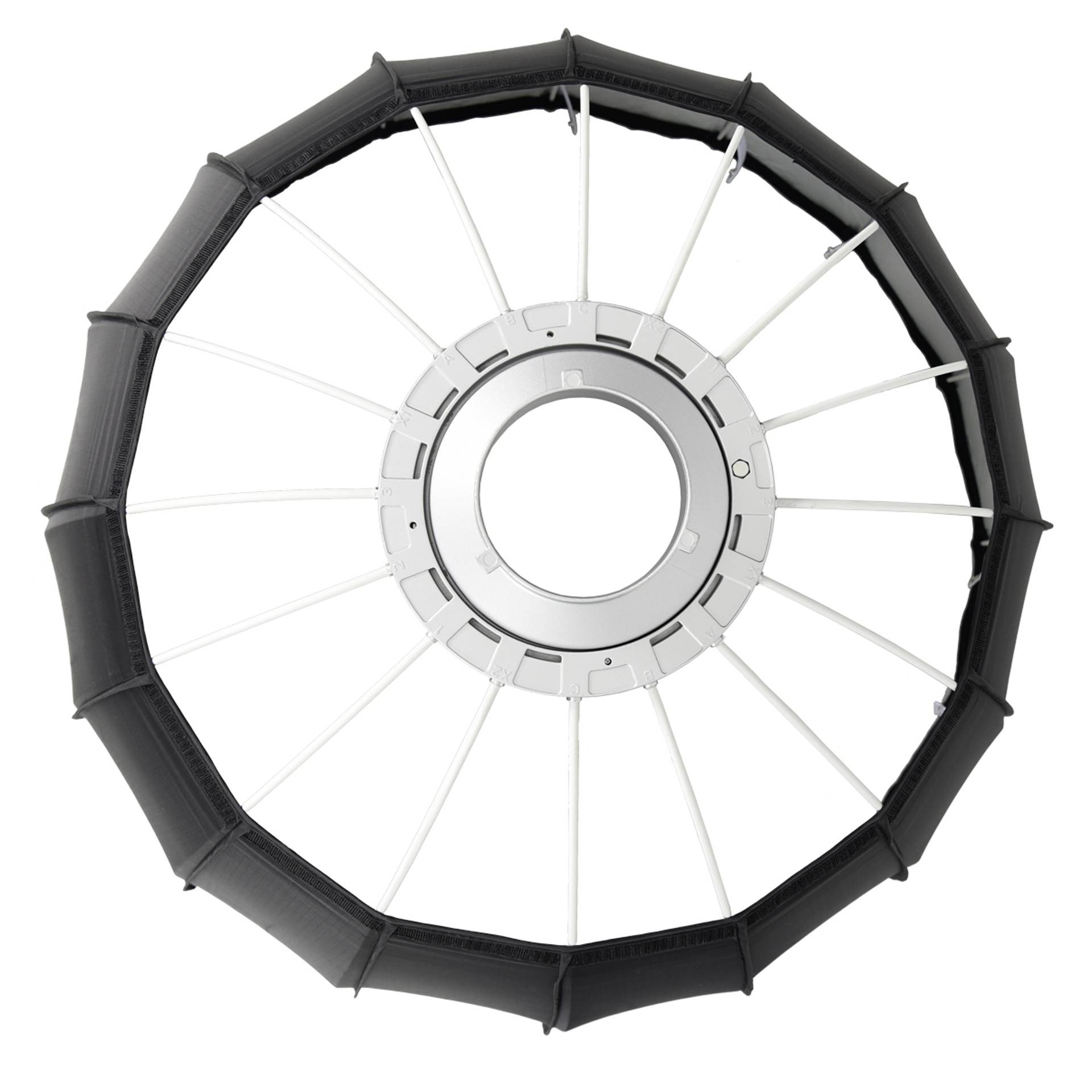 - Lieferumfang: Tragetasche, 16 Stäbe, je ein Außen- und Innendiffusor, 1 Softbox-Adapterring, 1 reflektierende Schutzhülle