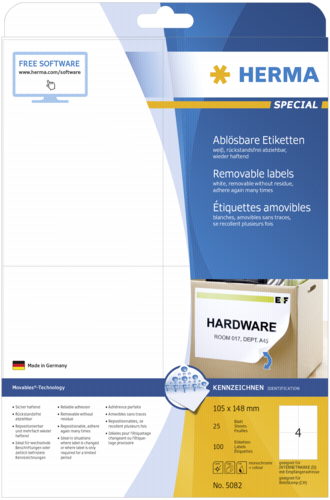 Herma Movables Etik. w. 105X148 25 Blatt DIN A4 100 Stück 5082