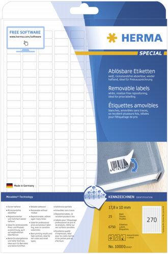 Herma Movables Etik. w. 17,8x10 25 Bl. DIN A4 6750 Stück 10000