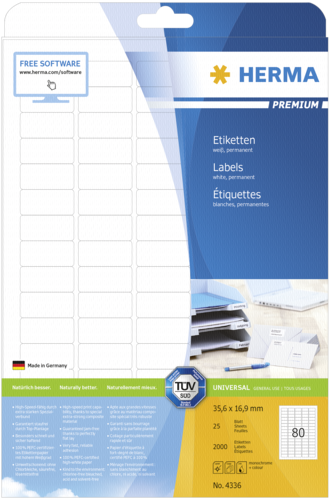 Herma Prem. Etiketten 35,6x16,9 25 Blatt DIN A4 2000 Stück 4336